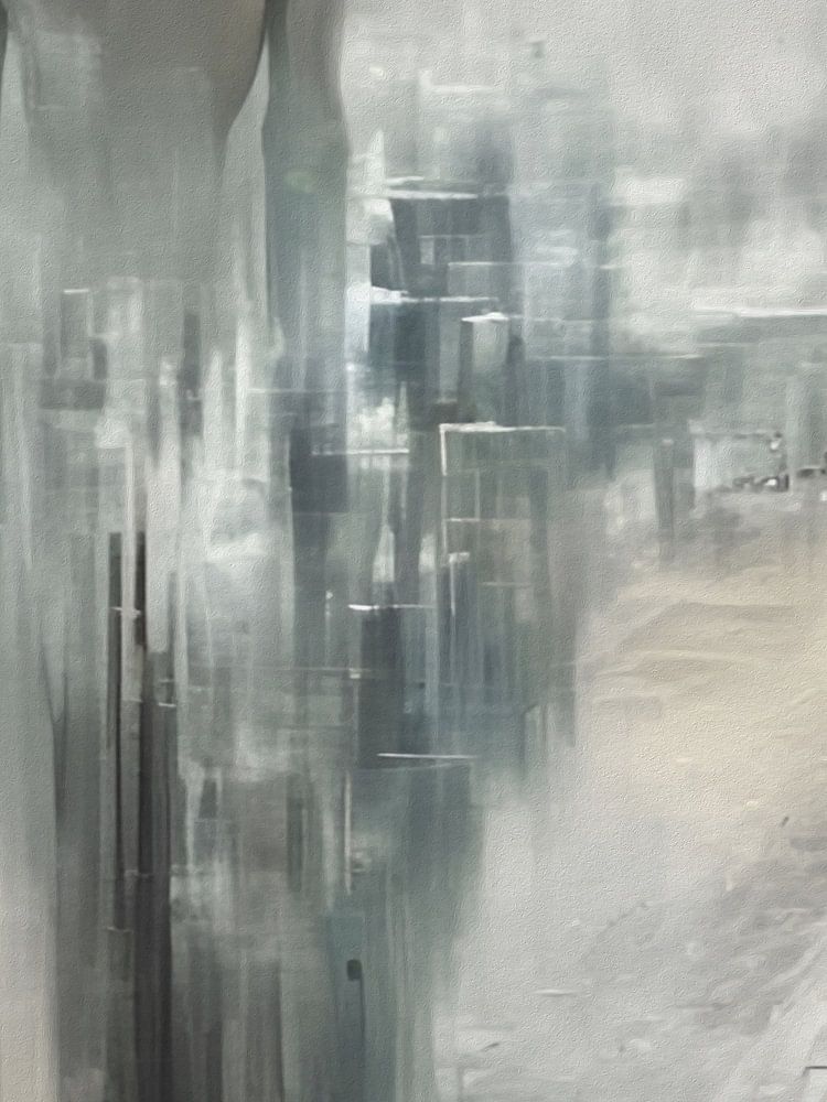 Vision surréaliste et obsédante de la solitude et de la transcendance, cette œuvre d'art capture l'essence éthérée d'un monde qui se dissout dans la brume et la mémoire. Une figure solitaire, à la fois présente et en déclin, contemple un paysage urbain abstrait qui brouille les frontières entre la réalité et l'illusion. La palette douce et rêveuse et les coups de pinceau délicats créent une atmosphère de réflexion tranquille, où le temps semble s'arrêter et où l'existence n'est qu'un murmure fugace dans le vent.