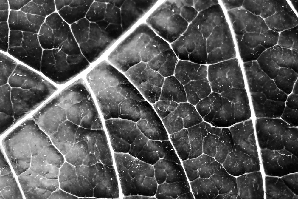 Macro Photography of a beautfilul Leaf, Black and White version. Copyright ©JAN-30-2018 by Pia Schneider, atelier COLOUR-VISION. All rights reserved.