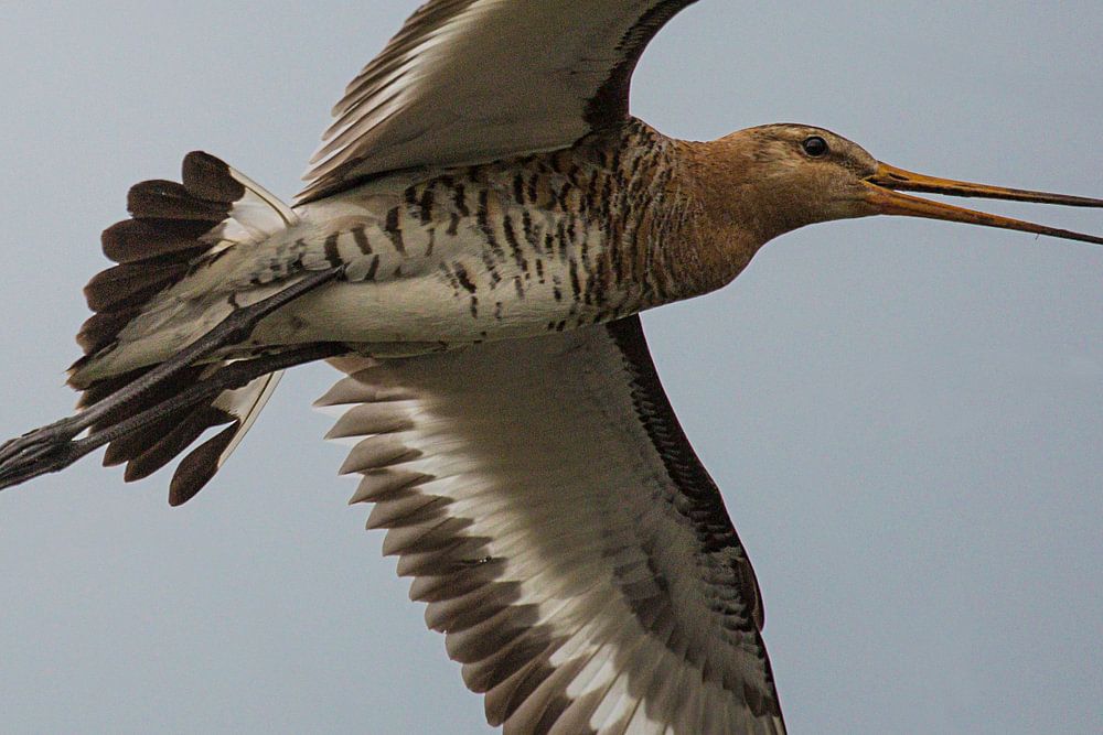 La Barge à queue noire défend la zone au-dessus de la prairie où ses jeunes (puces nicheuses) fouillent dans les hautes herbes. Tout intrus peut compter sur un oiseau très vigilant