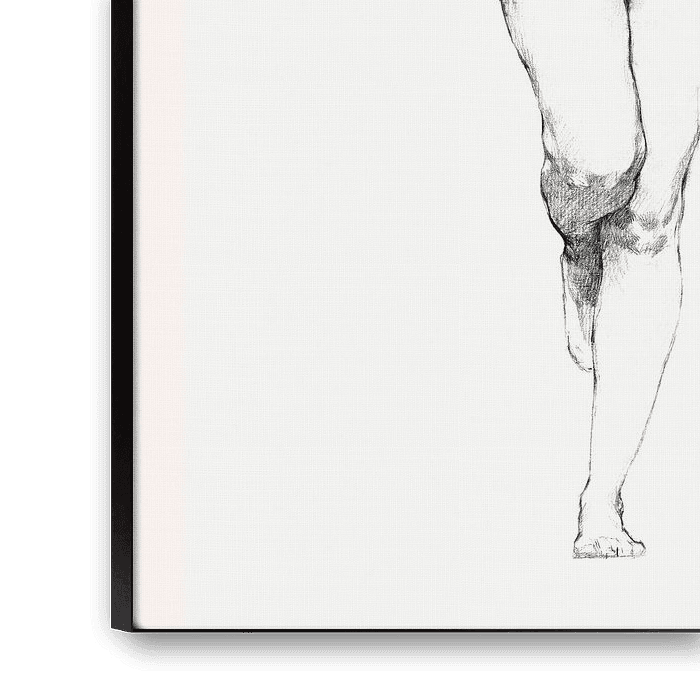 Dessin au fusain d'une femme nue, un peintre avec sa palette pleine de taches de peinture.