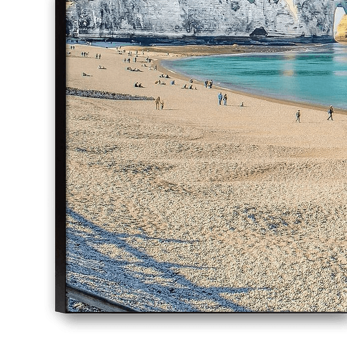 Le décor naturel d'Étretat a été une source d'inspiration pour les peintres et les hommes de lettres. Comme Claude Monet, Gustave Courbet n'a cessé de fixer à l'huile les falaises et la porte rocheuse du village. Vers le sud-ouest, tu vois le promontoire rocheux de l'Aiguille, haut de 70 mètres, devant la Porte d'Aval. Le poète normand Guy de Mauypassant y voyait dans la formation rocheuse un éléphant qui plongeait sa trompe dans l'eau.