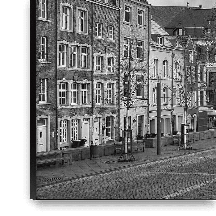 Découvrez l'élégance intemporelle de la cathédrale d'Aix-la-Chapelle grâce à cette impressionnante photographie en noir et blanc. Prise depuis le Katschhof, cette œuvre d'art montre la majestueuse cathédrale dans des nuances de gris très fines, qui restituent dans les moindres détails l'architecture impressionnante et l'atmosphère…