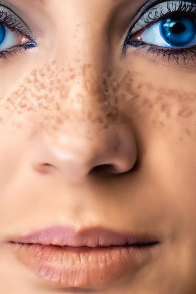 Portrait d'une jeune femme voilée aux yeux bleus très vifs et aux taches de rousseur