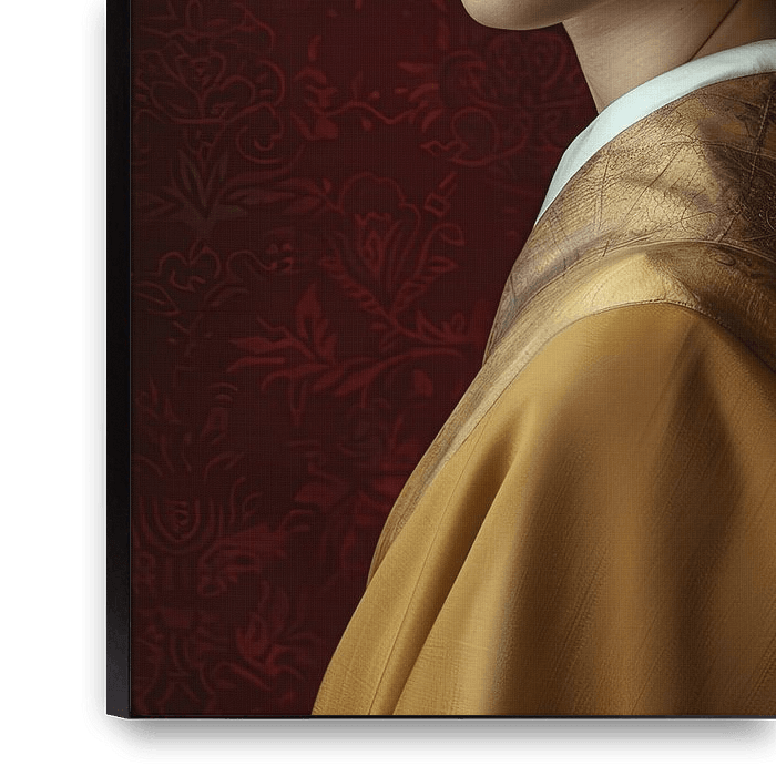 Une représentation époustouflante qui capture la grâce immortelle de la "Jeune fille à la boucle d'oreille en perle&quot ; de Vermeer avec l'intensité du style baroque. La profondeur et la riche texture de l'esthétique baroque se reflètent dans ce portrait, où les tissus doux et l'éclat nacré des boucles d'oreilles dominent la…