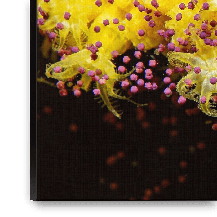 Cette image immortalise l'un des moments les plus rares de la Méditerranée : la floraison annuelle des gorgones Paramuricea clavata. Pendant quelques jours seulement dans l'année, les polypes jaune vif s'ouvrent pour libérer leurs œufs magenta dans l'eau libre. Cette photo spectaculaire prise dans les profondeurs au large de Tamariu,…