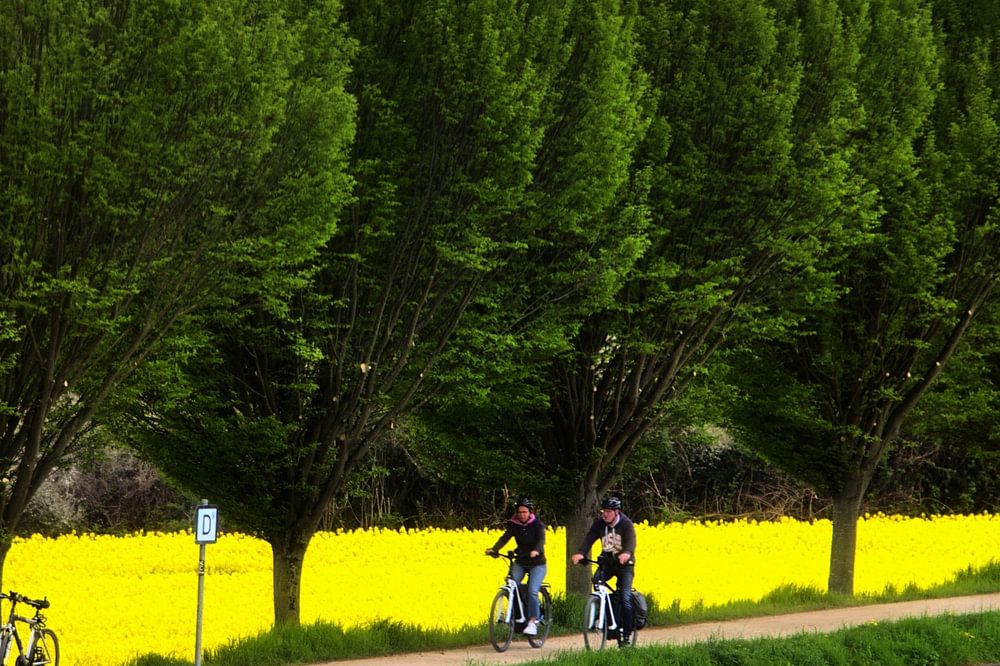 Achetez cette œuvre d'art de paysage La floraison du colza sur le canal par Edgar Schermaul sur toile, aluminium, ArtFrame ou photographie (encadrée), impression d'art en haute qualité et tout format.