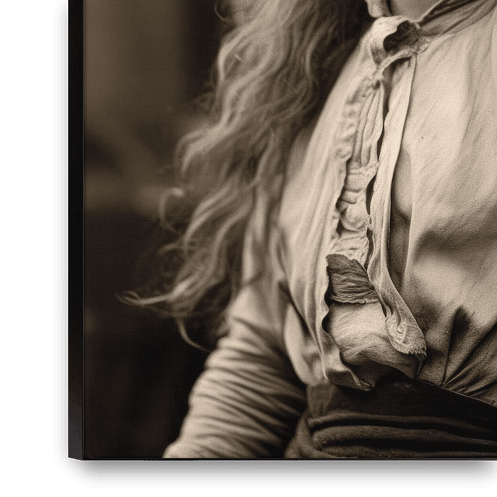 Ce portrait capture l'essence de la force naturelle et de la détermination dans une composition puissante. La femme est au centre de l'attention avec un regard calme et pénétrant, tandis que le vent passe dans ses cheveux indisciplinés. Le mouvement sauvage de ses cheveux contraste fortement avec son expression ferme et confère à la…