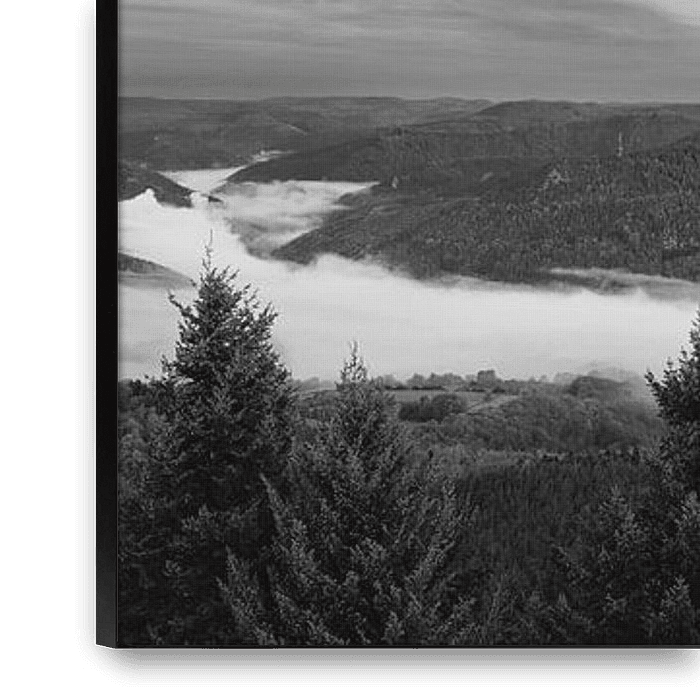 Achetez cette œuvre d'art de paysage La forêt du Palatinat au lever du soleil en noir et blanc. par Manfred Voss, Photographie Noir et Blanc sur toile, aluminium, ArtFrame ou photographie (encadrée), impression d'art en haute qualité et tout format.