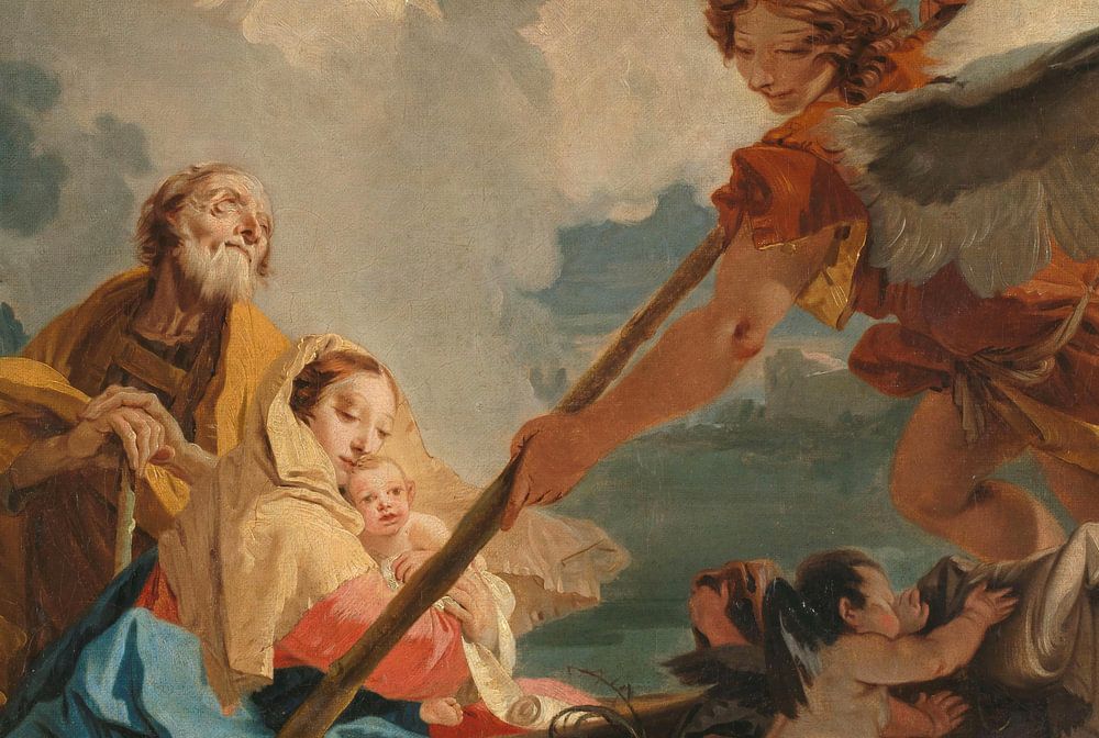 Achetez La fuite vers l'Égypte, Giovanni Battista Tiepolo en tant que reproduction sur toile, aluminium, ArtFrame ou photographie (encadrée), impression d'art en haute qualité et tout format