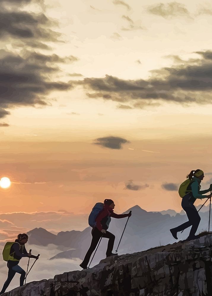 Scène dramatique de deux alpinistes pris dans un blizzard sur un sommet isolé. Cette image puissante met en évidence la puissance brute de la nature et l'esprit de persévérance de l'homme.
