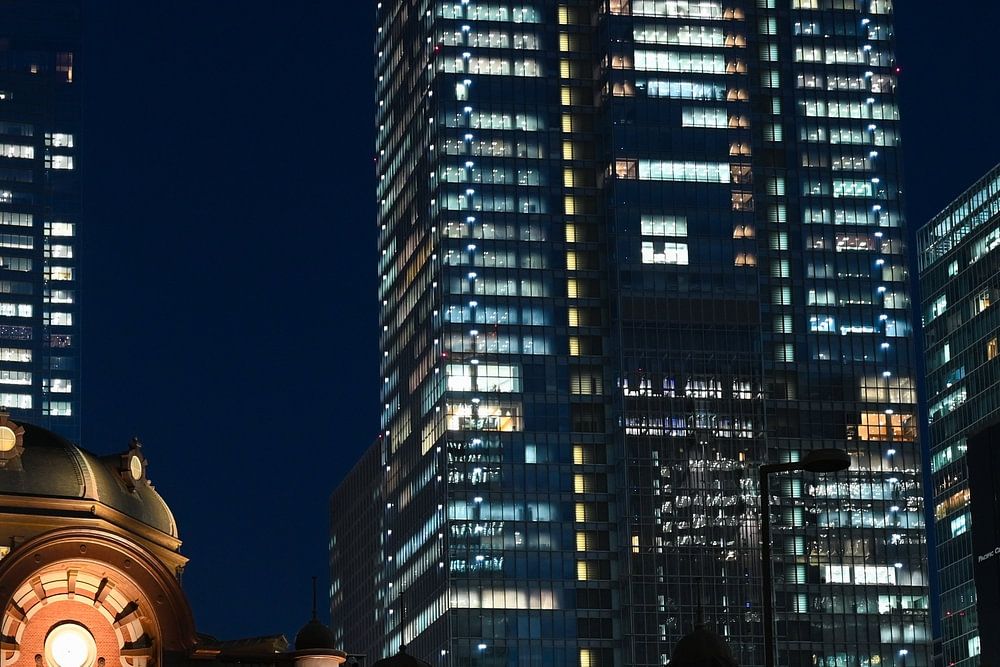 Cette image illustre l'harmonie entre l'ancien et le nouveau au cœur de la capitale japonaise, mêlant l'architecture classique à l'énergie vibrante du Tokyo moderne.