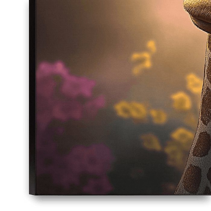 Apportez un sourire et une touche de sagesse à la chambre d'enfant avec ce portrait unique d'une girafe regardant à travers des lunettes.