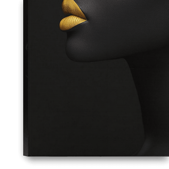 Le portrait montre une femme africaine impressionnante de profil, dont la beauté est mise en valeur par un maquillage jaune vif. Son visage est doux et harmonieusement sculpté, avec des pommettes soulignées et un teint éclatant qui souligne la vivacité de son teint. Le maquillage jaune doré encadre ses yeux et leur donne une brillance…