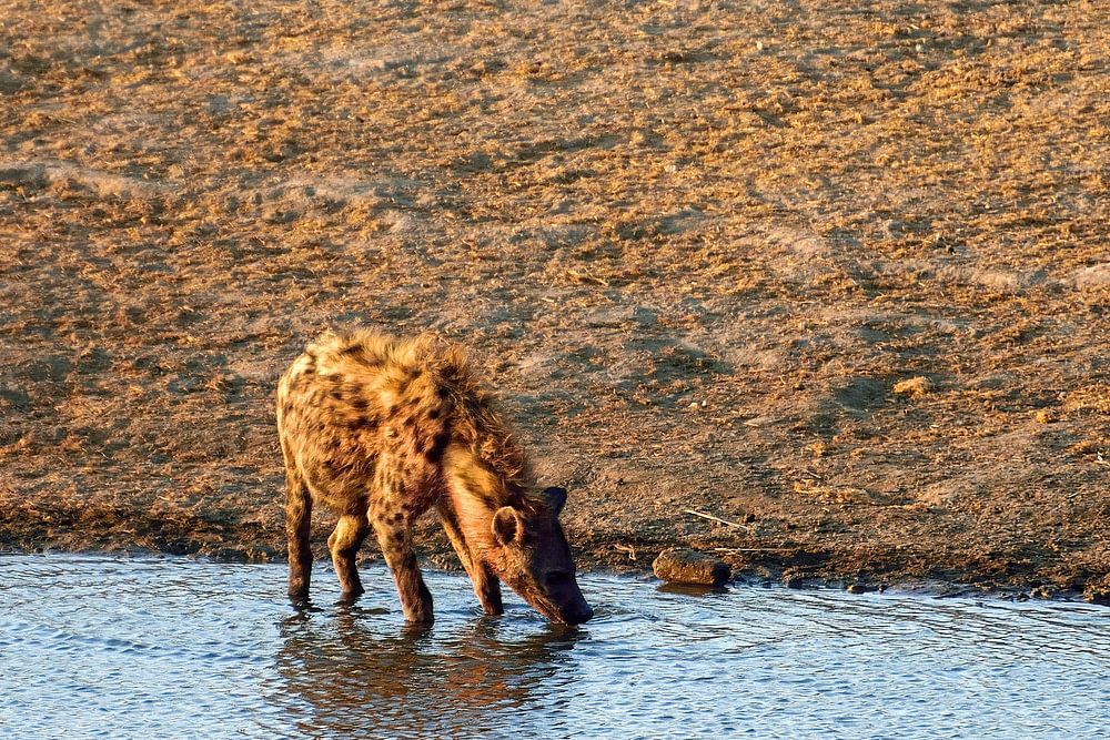 Achetez cette photo La hyène étanche la soif par Merijn Loch sur toile, aluminium, ArtFrame ou photographie (encadrée), impression d'art en haute qualité et tout format.