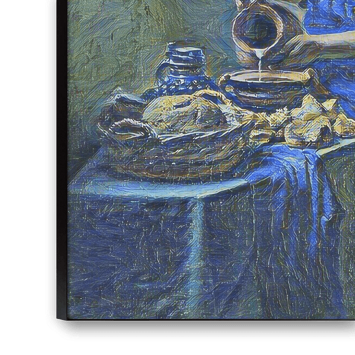 La laitière, également connue sous le nom de cuisine ou Milkmaid, est un tableau du maître néerlandais Johannes Vermeer datant d'environ 1660. Clever Art a réalisé une reproduction de cette œuvre dans le style de la Nuit étoilée de Vincent van Gogh de 1889.