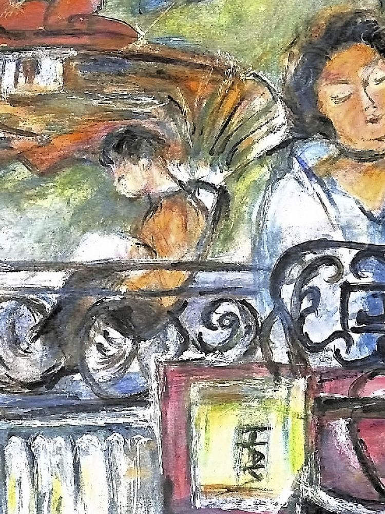 La leçon de piano. Inspiré par Henri Matisse, peint au crayon pastel et au stylo à encre noire.