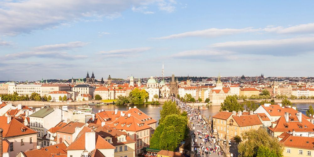 Vue panoramique de la Petite Ville sur la Vltava et le pont Charles vers la vieille ville de Prague,