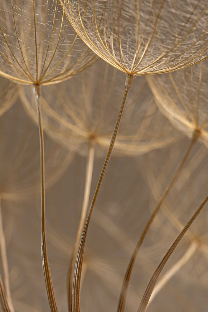 La lumière tombe sur le bulbe duveteux d'un Tragopogon" ; est une photo d'un morceau d'un magnifique bulbe duveteux d'un Tragopogon (aussi appelé Morgenster aux Pays-Bas). Le Tragopogon, comme le pissenlit, fait partie de la famille des Composées. Lorsque la fleur a fini de fleurir, elle se transforme en un bulbe duveteux, avec une structure duveteuse ressemblant à une toile d'araignée.