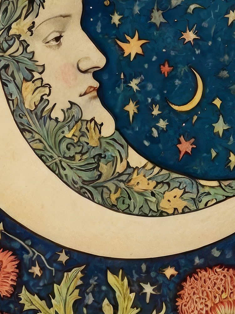 Achetez cette œuvre d'art florale La lune et les fleurs Style William Morris par TOAN TRAN sur toile, aluminium, ArtFrame ou photographie (encadrée), impression d'art en haute qualité et tout format.