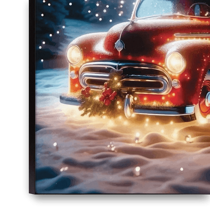 Vivez la magie de Noël avec cette image réconfortante d'un camion Coca-Cola vintage orné de lumières scintillantes et d'un sapin de Noël. Cette scène festive ne manquera pas d'apporter de la joie et de la bonne humeur dans n'importe quelle maison.