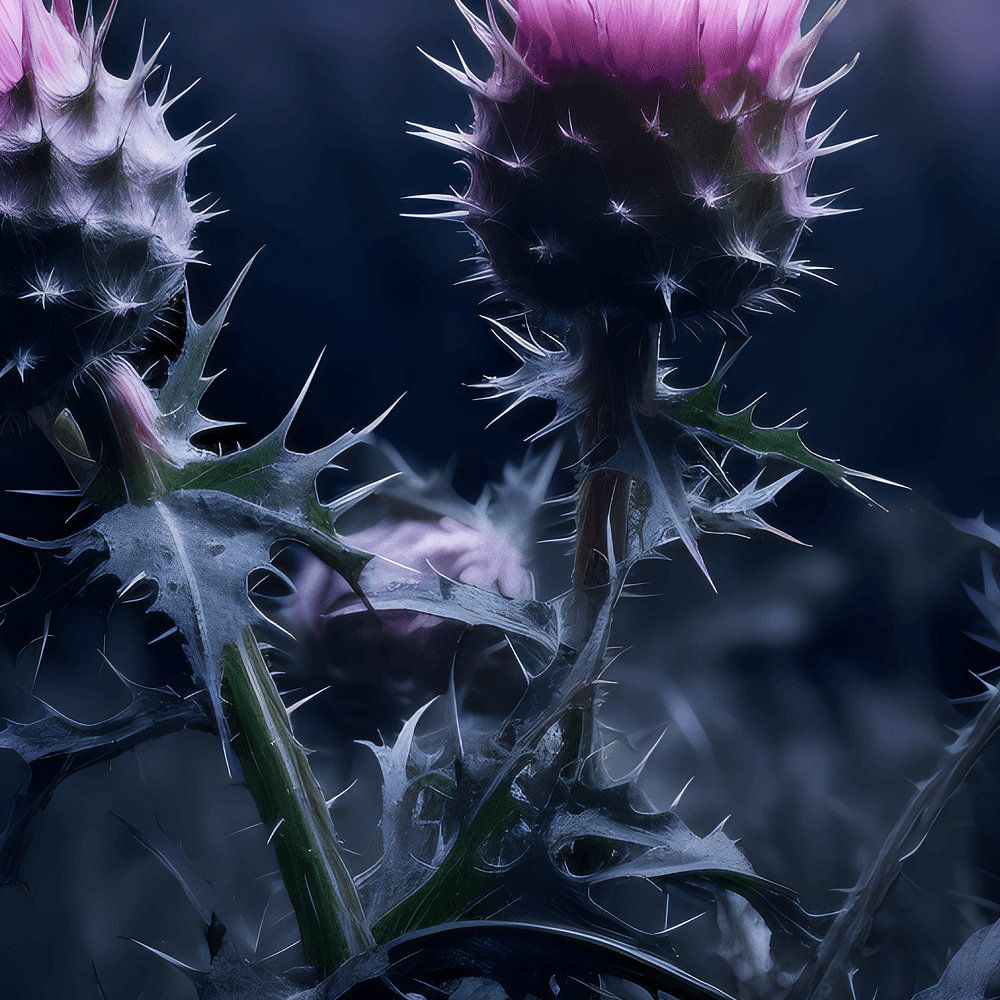 Entrez dans le monde mystérieux des fleurs qui s'illuminent comme des joyaux vibrants sur un fond sombre et profond. Dans un paysage apparemment nocturne, les fleurs violettes et roses brillent comme des perles secrètes, un festin de contraste et de drame coloré. Les couleurs intenses semblent danser dans la faible lumière, leur élégance et leur splendeur prenant vie dans l'ombre. Cette magnifique flore semble briller dans l'obscurité, un spectacle enchanteur qui excite les sens. Chaque fleur est une œuvre d'art, dont la beauté est d'autant plus impressionnante qu'elle se détache sur l'arrière-plan profond, une célébration du contraste et de la grâce naturelle ;