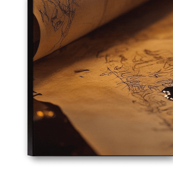 Avec une main élégante aux reflets métalliques en train d'imprégner de l'encre sur du vieux papier, cette scène allie art et technologie de manière fascinante. L'atmosphère mystérieuse et le contraste entre l'élément moderne et l'écriture historique ajoutent une touche créative et inspirante à un salon ou un bureau.