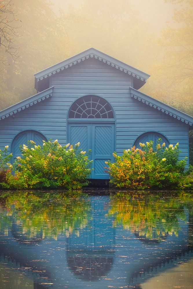 La maison bleue à bateaux du Kroondomein Het Loo à Apeldoorn est une structure remarquable et historique qui occupe une place spéciale dans le paysage du domaine royal. Le Kroondomein est une vaste réserve naturelle et terrain de chasse appartenant à la famille royale néerlandaise. La maison à bateaux se trouve au bord d'un des plans d'eau de la région et se distingue par sa couleur bleue caractéristique.