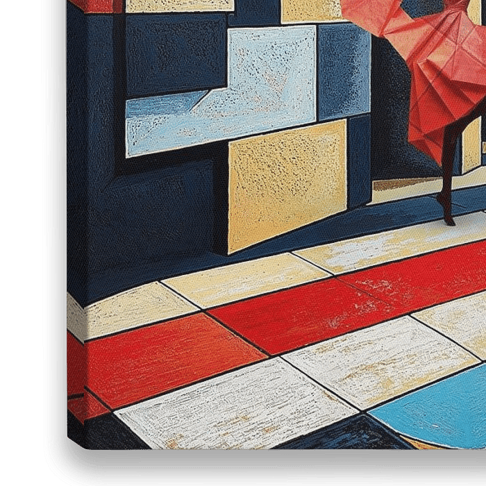 Cette œuvre réunit deux maîtres néerlandais de l'art et de l'illusion : les compositions géométriques distinctives de Piet Mondrian et les profondeurs optiques de M.C. Escher. Le résultat est une architecture impossible, où les règles de la…