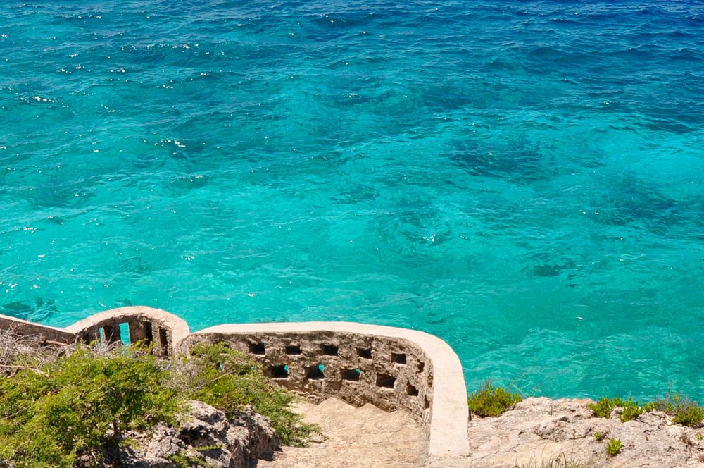 La magnifique côte avec la mer bleu azur de l'île caribéenne de Bonaire.