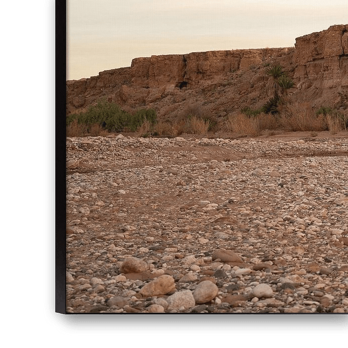 À Ait Ben Haddou, un village très ancien et populaire du Maroc, vous trouverez également une nature magnifique. Une petite rivière gazouillante, avec des rochers et des palmiers en arrière-plan. Le coucher de soleil a donné à l'ensemble des couleurs très douces, ce qui donne une impression encore plus chaleureuse.