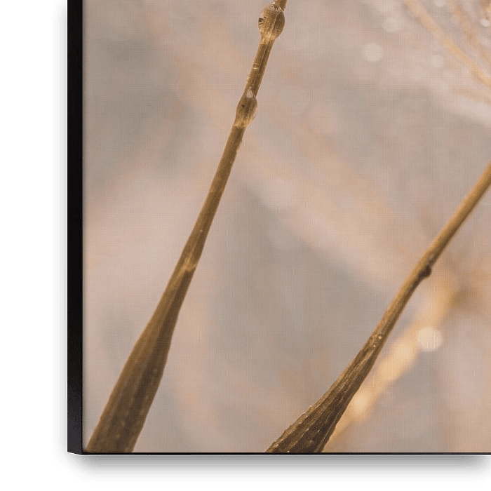 "Le duvet naturel de couleur pastel porte les minuscules gouttelettes d'eau" est une macrophotographie du duvet d'une étoile du matin, photographiée en diagonale. De petites gouttelettes d'eau sont accrochées à cette étoile du matin. Cette photo (éditée) a de douces couleurs pastel naturelles / blanc / crème / couleur or / couleur champagne / brun / tons beiges (et semble également contenir un peu de rose et de bleu).