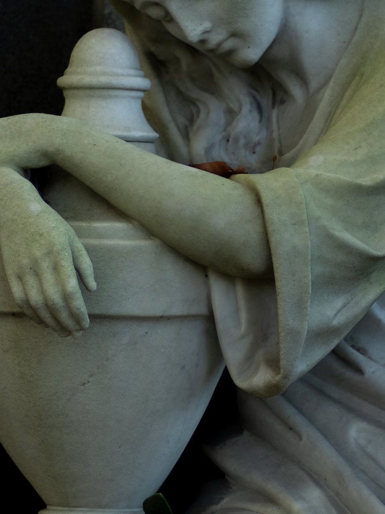 Monument du cimetière Crooswijk de Rotterdam. Il symbolise la perte d'un être cher et rayonne de tendresse et de tristesse. La photo presque monochrome fait ressortir les petits détails colorés.