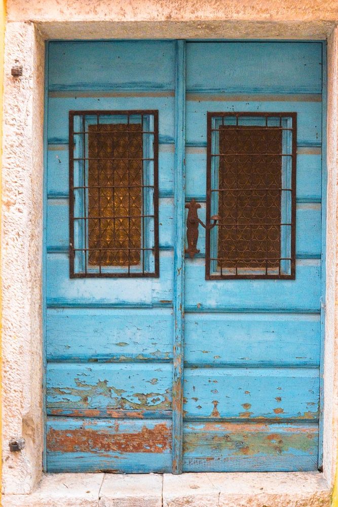 Dans les rues étroites de Rovinj, vous rencontrerez les détails les plus colorés. Cette porte bleue usée par le temps, entourée d'un mur jaune ensoleillé et de vieilles pierres, raconte une histoire de temps et de caractère. La peinture s'est écaillée, le bois est usé par les intempéries, et c'est précisément ce qui fait son charme.