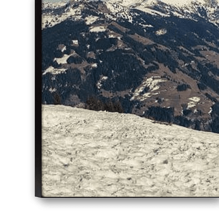 Cette photo panoramique offre une vue impressionnante d'un vaste paysage de montagne dans sa splendeur hivernale. L'image s'étend de gauche à droite, révélant une série d'imposants sommets montagneux recouverts d'une épaisse couche de neige. Le ciel bleu vif forme un puissant contraste avec le blanc de la neige, révélant les contours des montagnes dans des détails précis et détaillés. Au premier plan se trouve un champ de neige légèrement vallonné, tandis que des pins sombres sont éparpillés, ajoutant de la profondeur à la composition. L'horizon semble infini, ce qui renforce l'impression d'espace et de liberté. Cette photo respire la paix et la grandeur - un moment de calme dans un cadre naturel grandiose. Cette photo est parfaite pour les amateurs de paysages de montagne, de photographie panoramique et pour tous ceux qui sont inspirés par la beauté de la haute montagne.