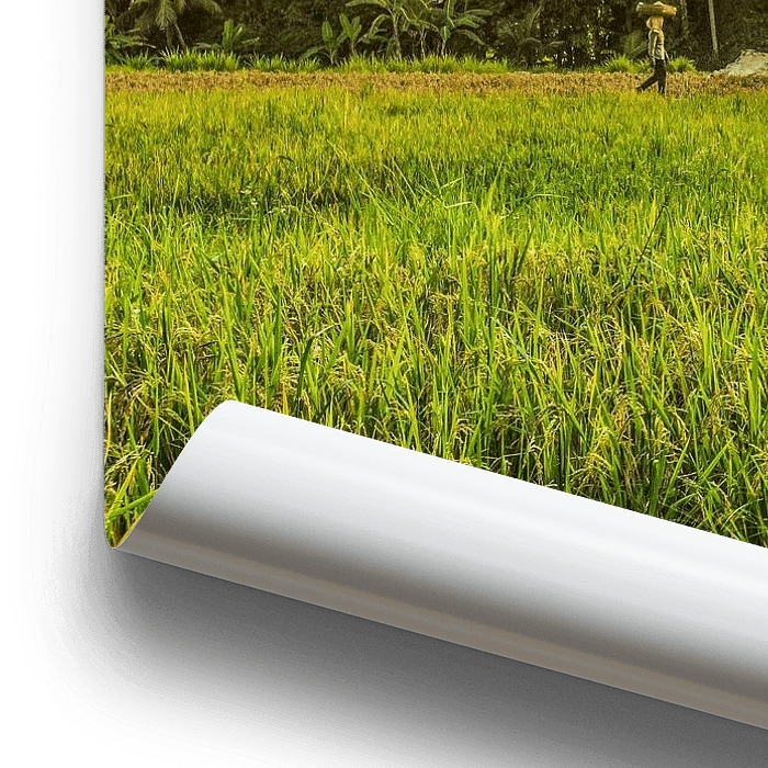 Travailleur dans une rizière à Ubud Bali pendant l'heure d'or
