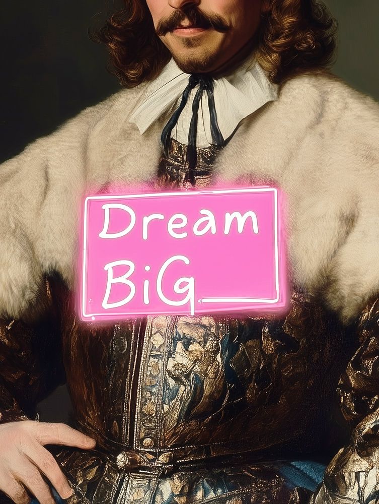 Portrait d'un roi médiéval avec le slogan "Dream Big".