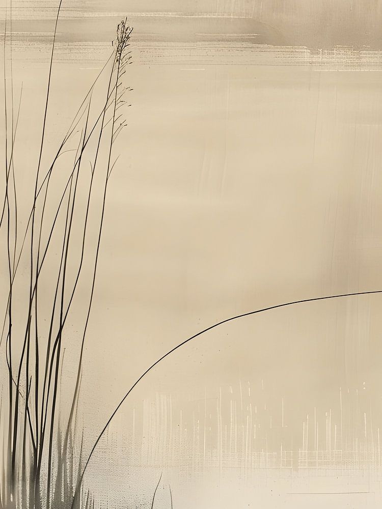 Cette œuvre d'art représente un paysage serein dans lequel des herbes délicates se dressent gracieusement sur un fond doux et tamisé. Le jeu subtil de l'ombre et de la lumière crée une atmosphère paisible qui invite à la contemplation. La composition minimaliste souligne la beauté de la simplicité et est le complément parfait pour tout espace qui recherche une touche de calme et d'élégance. Embellissez votre environnement avec cette pièce qui incarne le reflet paisible et la beauté naturelle.