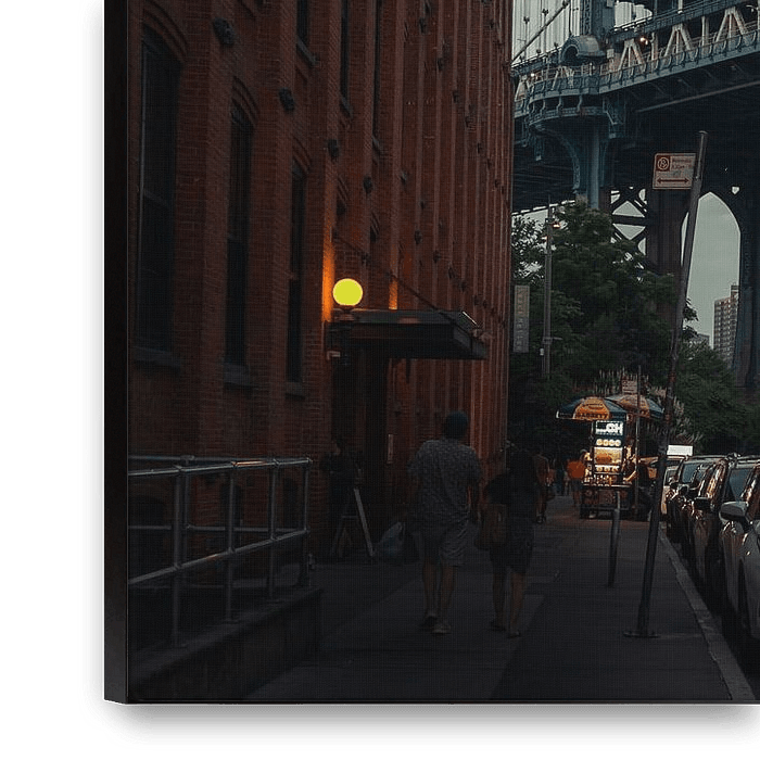 Achetez cette photo La vie de la rue new-yorkaise dans le décor emblématique du pont par NZME Photography sur toile, aluminium, ArtFrame ou photographie (encadrée), impression d'art en haute qualité et tout format.