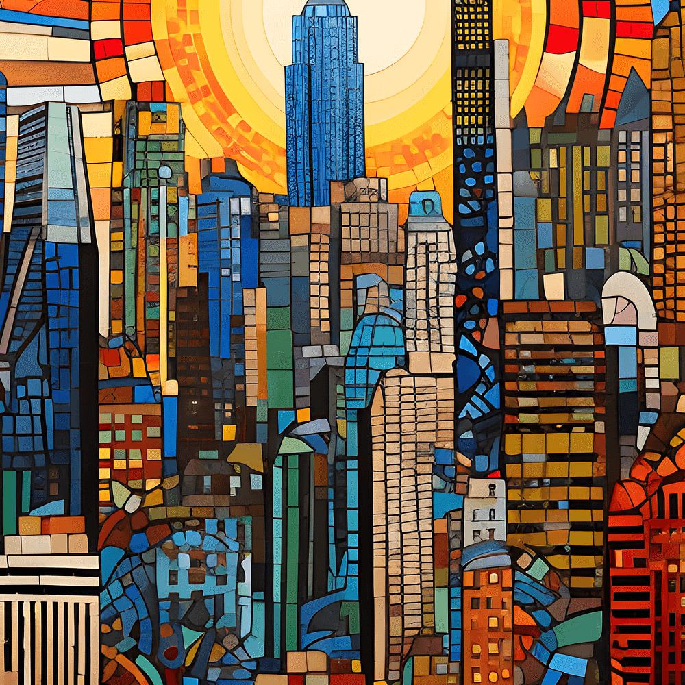 Cette œuvre représente la ville de New York, dans le style de Pablo Picasso. Les formes de mosaïque qui caractérisent ses œuvres sont magnifiquement et colorées dans cette pièce. L'œuvre fait partie de la collection 'World cities through the eyes of famous artists' ;. Une pièce impressionnante, un bijou sur le mur !