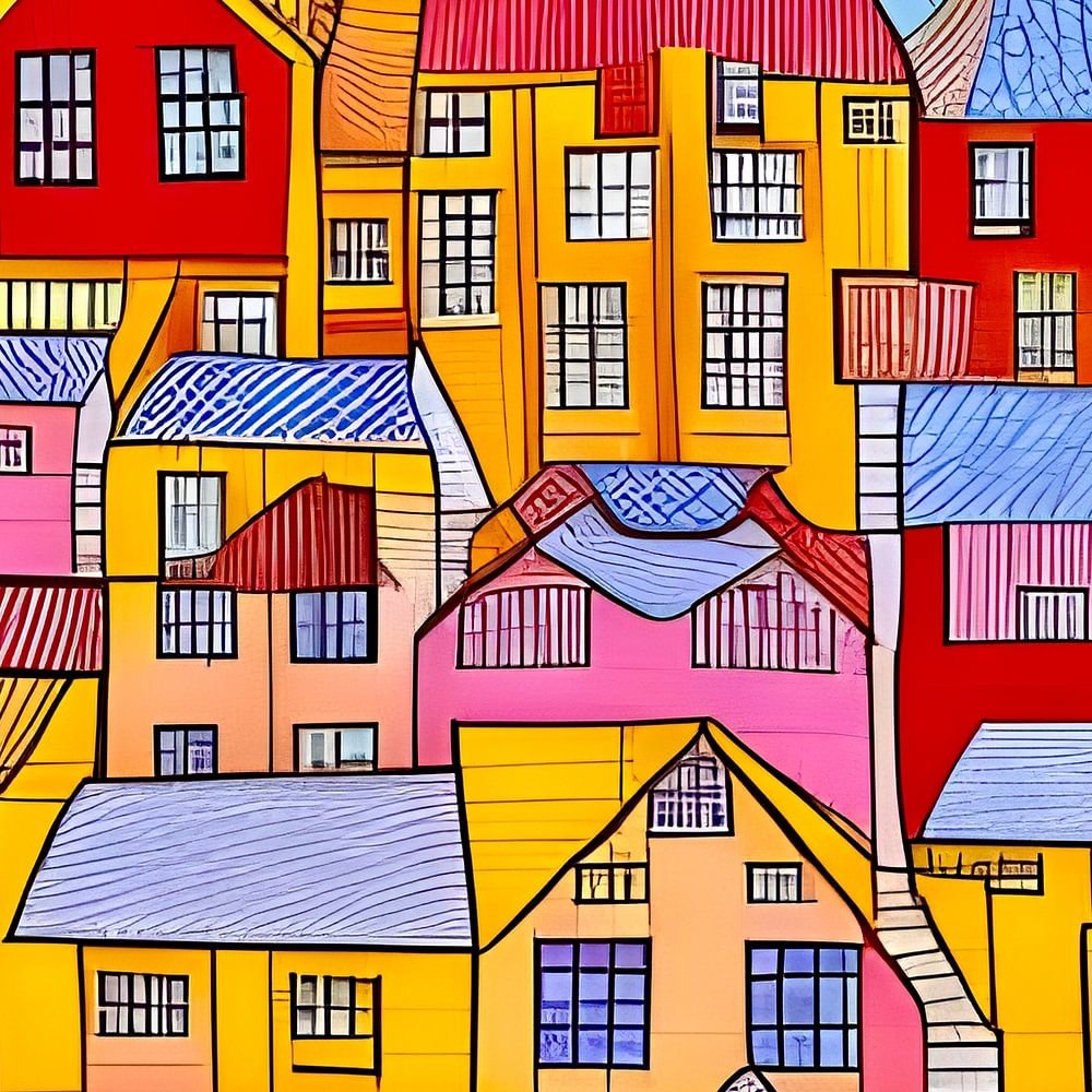 Acheter ce illustration La ville en couleur par Lily van Riemsdijk - Art Prints with Color sur toile, aluminium, ArtFrame ou photographie (encadrée), impression d'art en haute qualité et tout format.