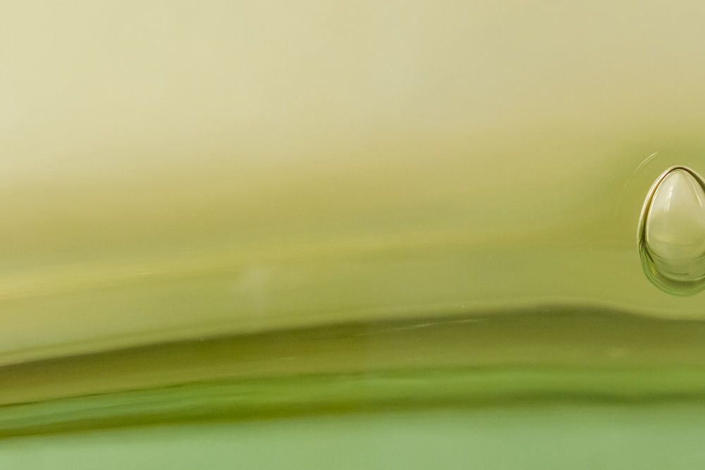 Les lignes inclinées rappellent un paysage, les couleurs créent la tranquillité. La goutte donne à cette image une touche de tension et attire le regard. Elle se détache nettement sur un fond flou et doux.