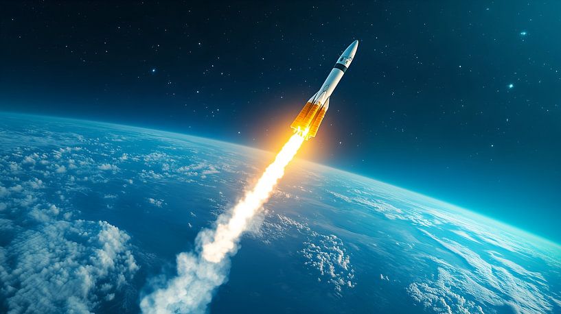 Vivez l'expérience de l'exploration spatiale avec cette image étonnante d'une fusée se propulsant dans la vaste étendue de l'espace. Parfaite pour les passionnés d'aérospatiale et les projets sur le thème de l'espace.
