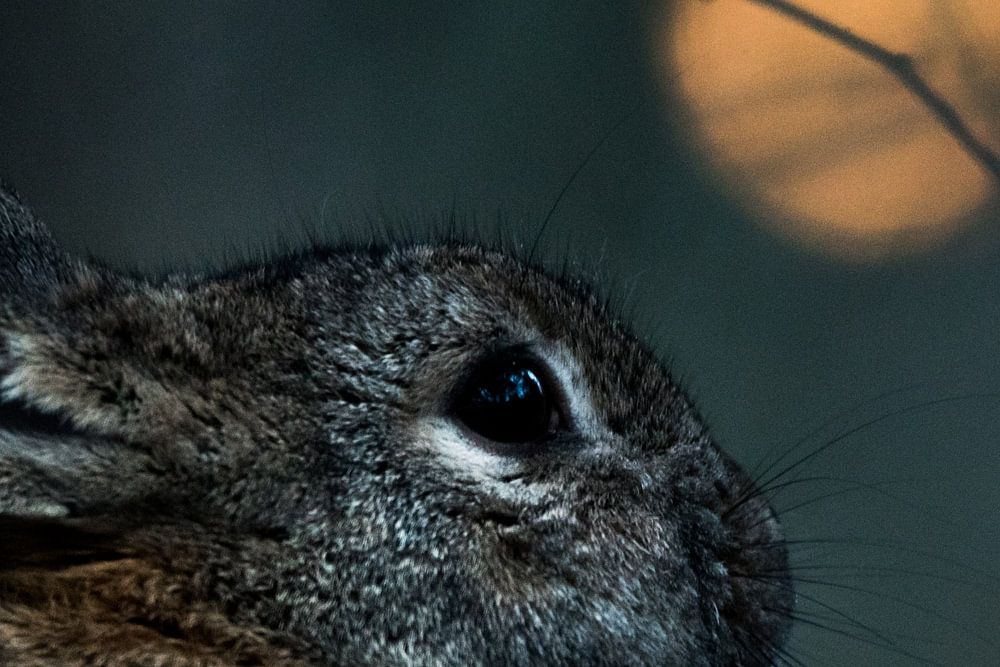 Un lapin sautillant au crépuscule, qui n'a absolument pas peur du photographe que je suis. En arrière-plan, on peut voir la lumière d'un lampadaire, ce qui donne l'impression d'un lapin à la pleine lune.