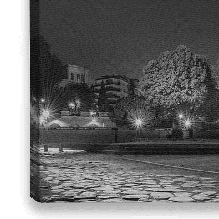 Célèbre symbole de la ville dans le centre antique de Rome, peu avant le lever du soleil à l'heure bleue. Image panoramique / Panorama de la ville en noir et blanc…