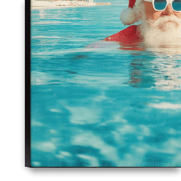 Acheter ce art numérique Le Père Noël se détend dans une piscine tropicale par Matthias Hauser sur toile, aluminium, ArtFrame ou photographie (encadrée), impression d'art en haute définition et tout type de format.