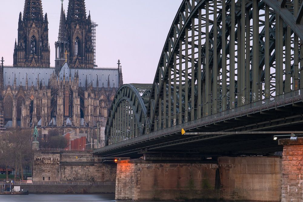 Humeur matinale sur le Rhin à Cologne avec la cathédrale et le pont Hohenzollern, Allemagne