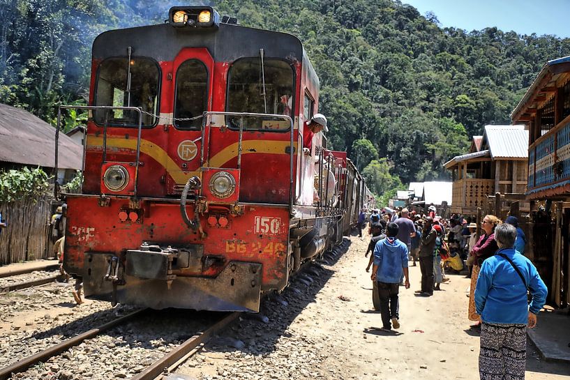 Le train reliant Sahambavy à Manakara n'est pas un simple trajet en train, mais une expérience qui vous emmène au cœur de Madagascar. Dès que la locomotive entre dans un village, tout le monde sort : enfants, parents, marchands, curieux. Des gens qui n'ont presque rien, mais qui vous accueillent quand même avec un sourire et un cœur ouvert. Les maisons en bois, la terre rouge, les collines verdoyantes et l'agitation autour des rails forment ensemble un décor plein de vie. Ici, le train est plus qu’un simple moyen de transport, c’est un lieu de rencontre, un lien entre les villages, une lueur d’espoir qui repasse chaque jour. L’atmosphère qui se dégage de la photo est chaleureuse et humaine : un moment où la simplicité, la communauté et la beauté du quotidien se rejoignent. Elle montre à quel point Madagascar est un pays exceptionnel, pur, accueillant et plein de vie, même dans les endroits les plus modestes.
