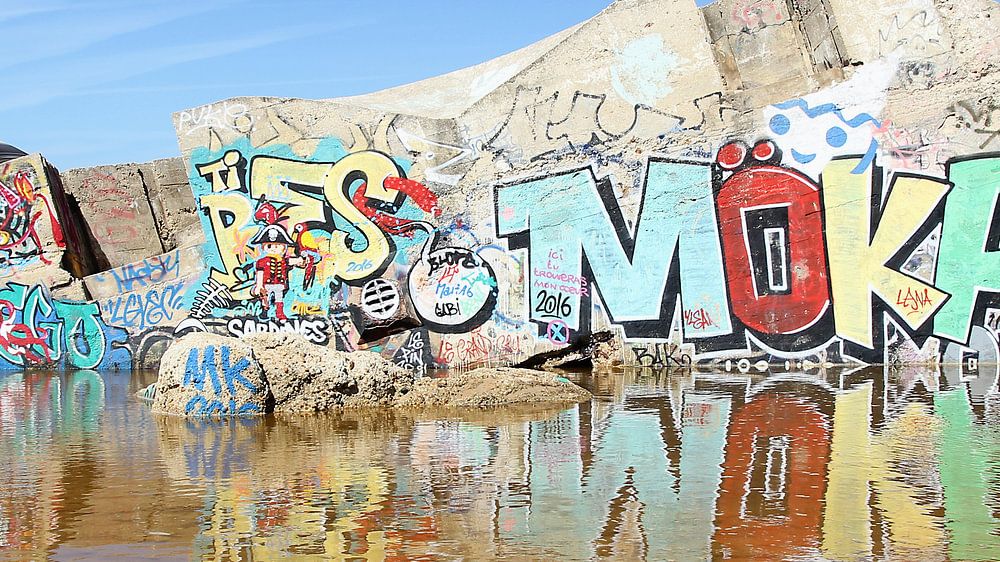 Le bunker tagué près de Le-Pin-Sec, sur la côte sud-ouest de la France. Quelque chose qui était laid autrefois peut être beau aujourd'hui.