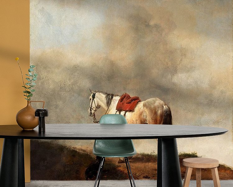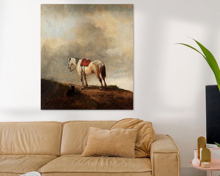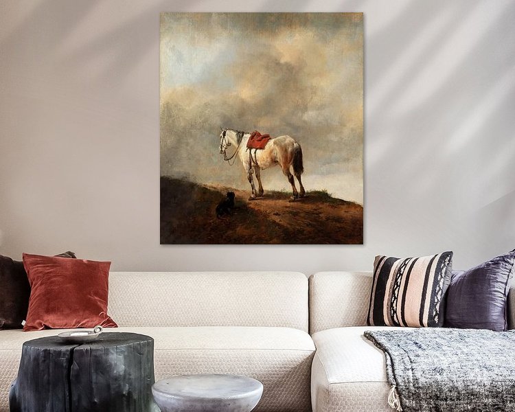 Le cheval solitaire du maître de l'image. D'après une ancienne peinture du musée national. Le cheval attend sur la montagne avec le chien qui attend son maître. Une belle scène pour toute maison qui aime l'art ancien mais qui a été relooké.