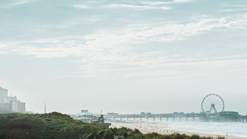 La belle vue de Scheveningen, avec la jetée à droite et Scheveningen à gauche.